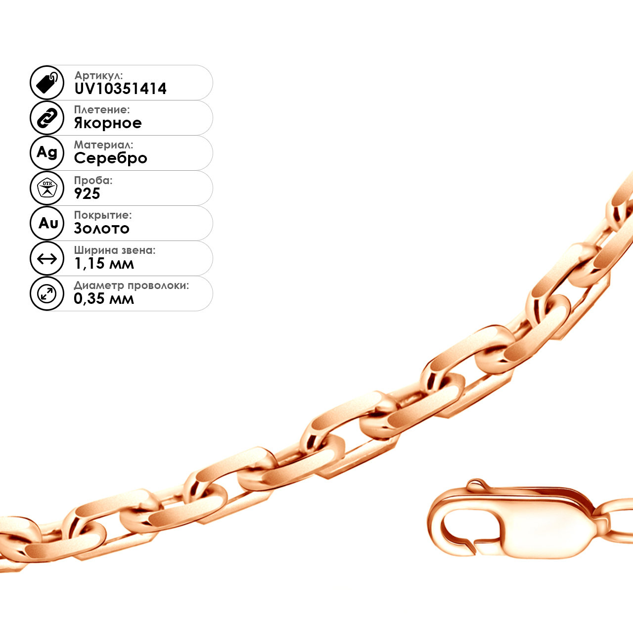 Pletnev Jewelry Цепочка серебряная 925 пробы, женская, покрытая золотом. Автоматное плетение: Якорное. Полновесная.