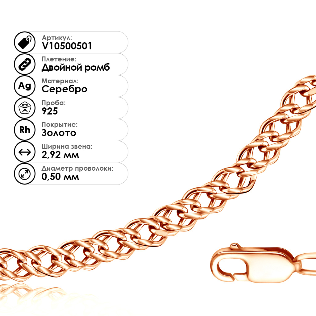 Pletnev Jewelry Цепочка серебряная "Двойной ромб" позолоченная 925 пробы. Полновесная с алмазной огранкой.