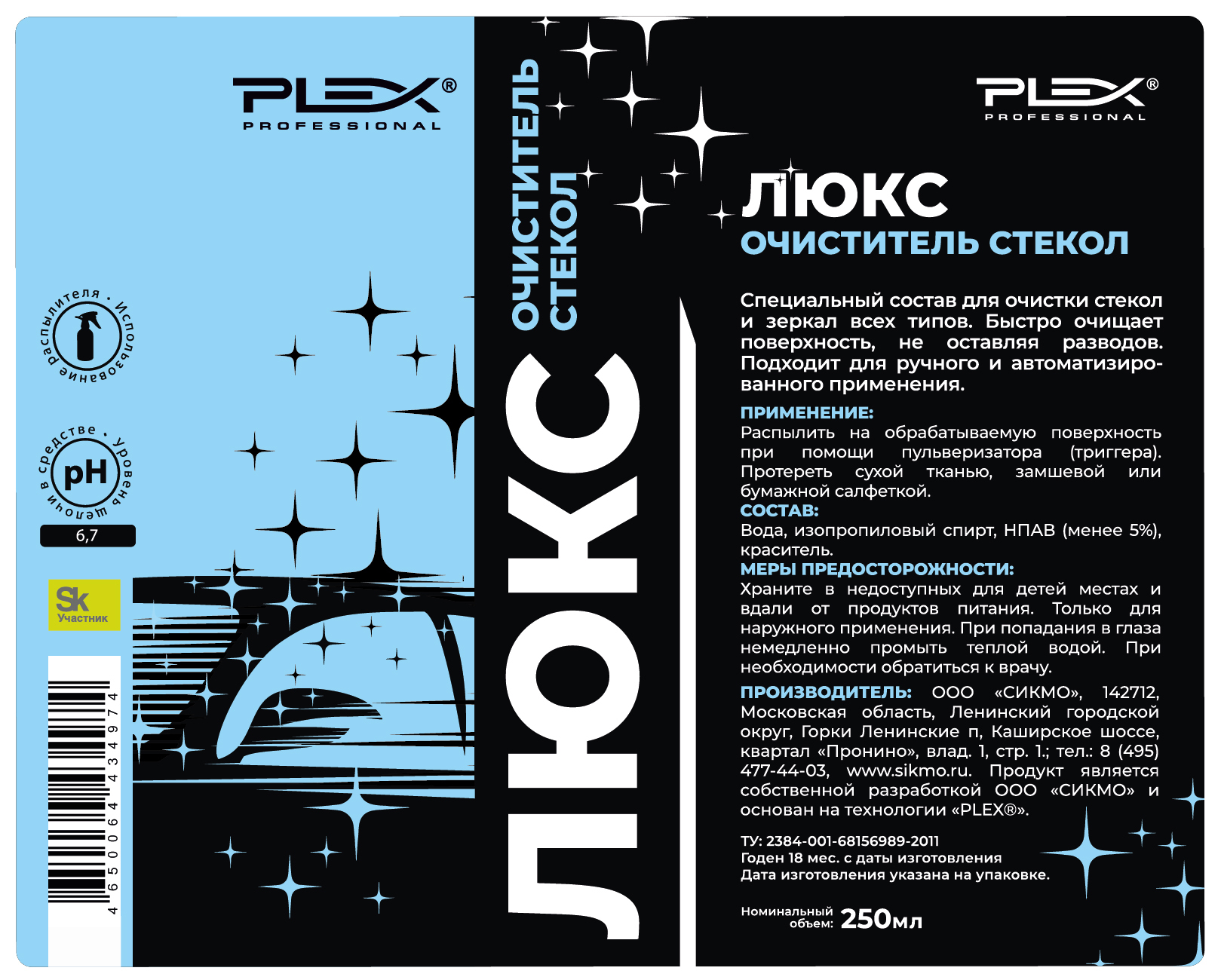 Очиститель стекол (триггер) PLEX ЛЮКС 250мл
