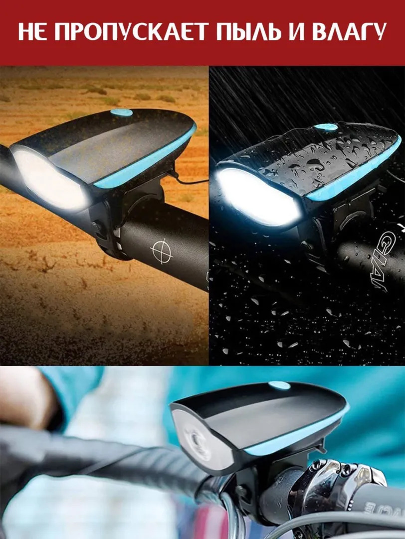 Светодиодный велосипедный фонарь с гудком, перезарежаемый (передний)