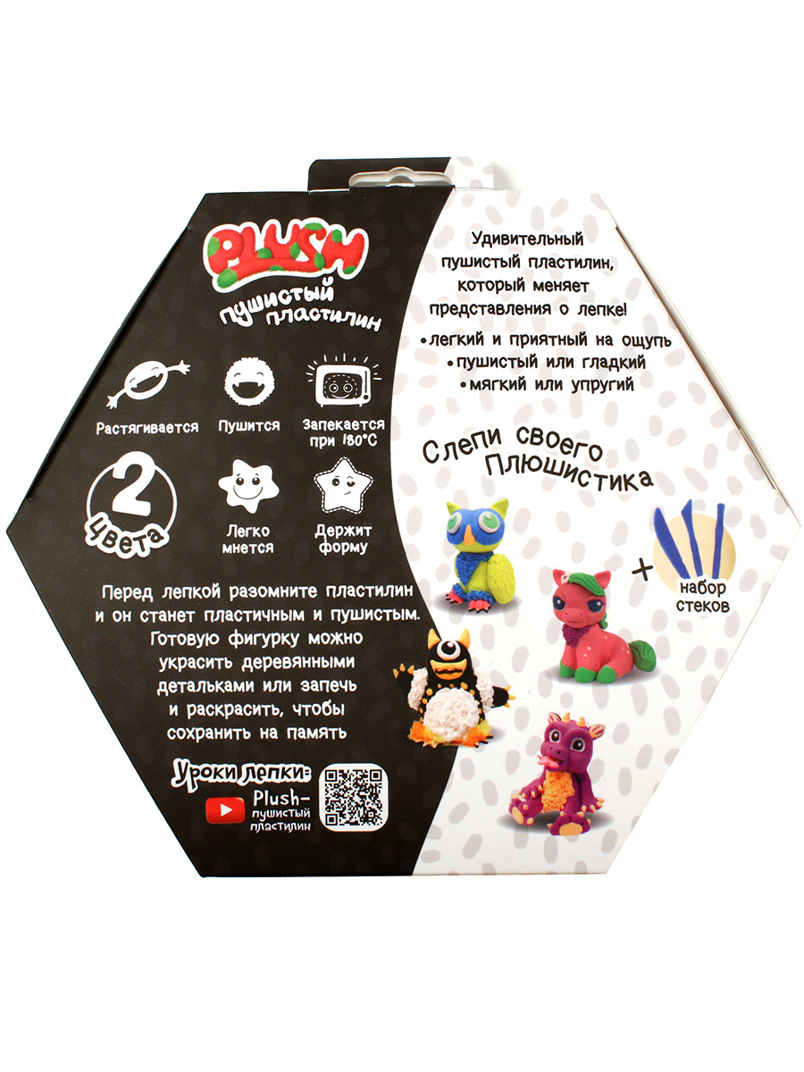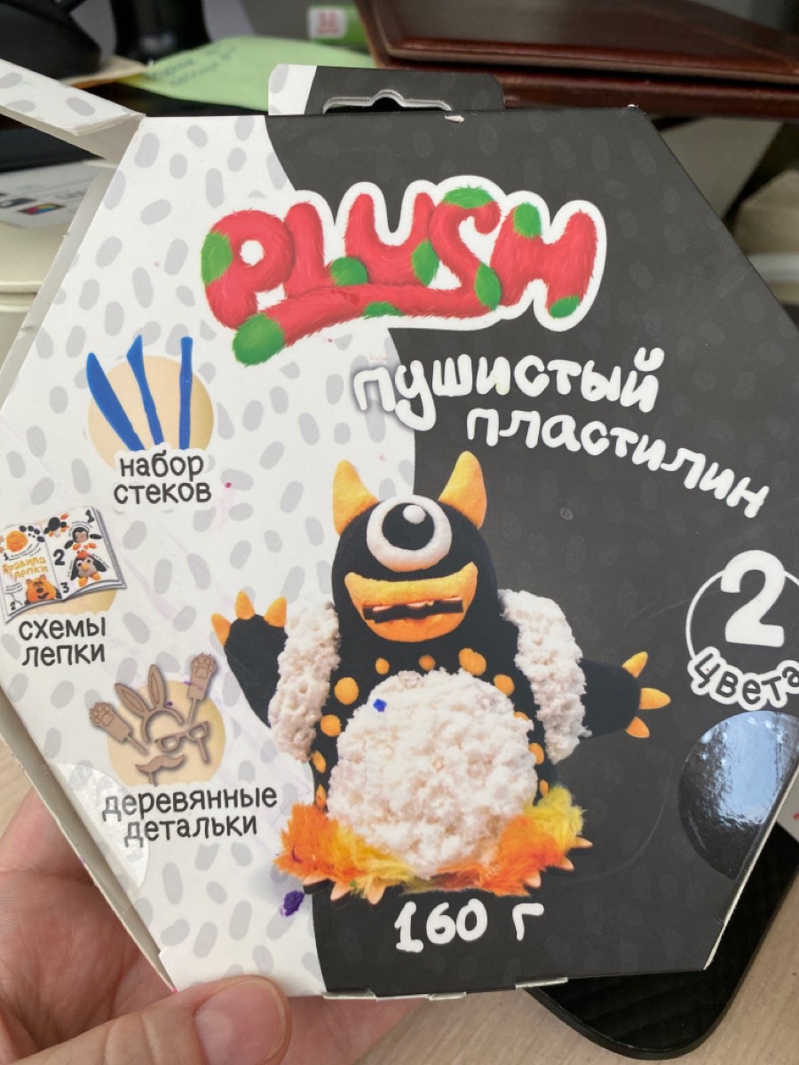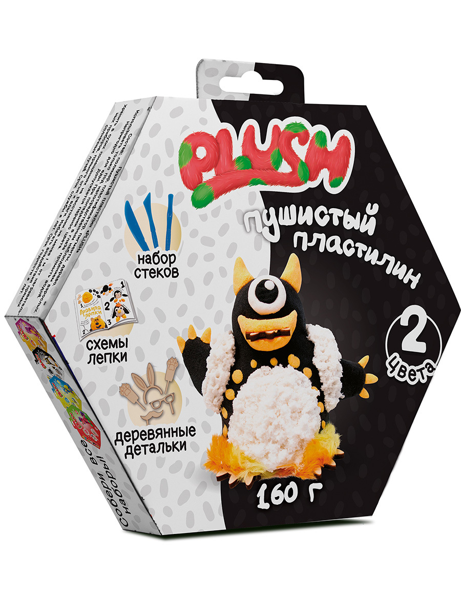 Пушистый пластилин "PLUSH" набор для лепки черный и белый, 160 г.