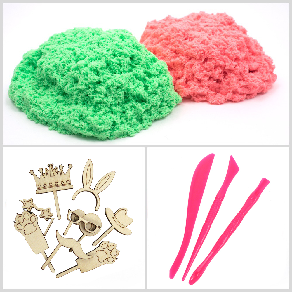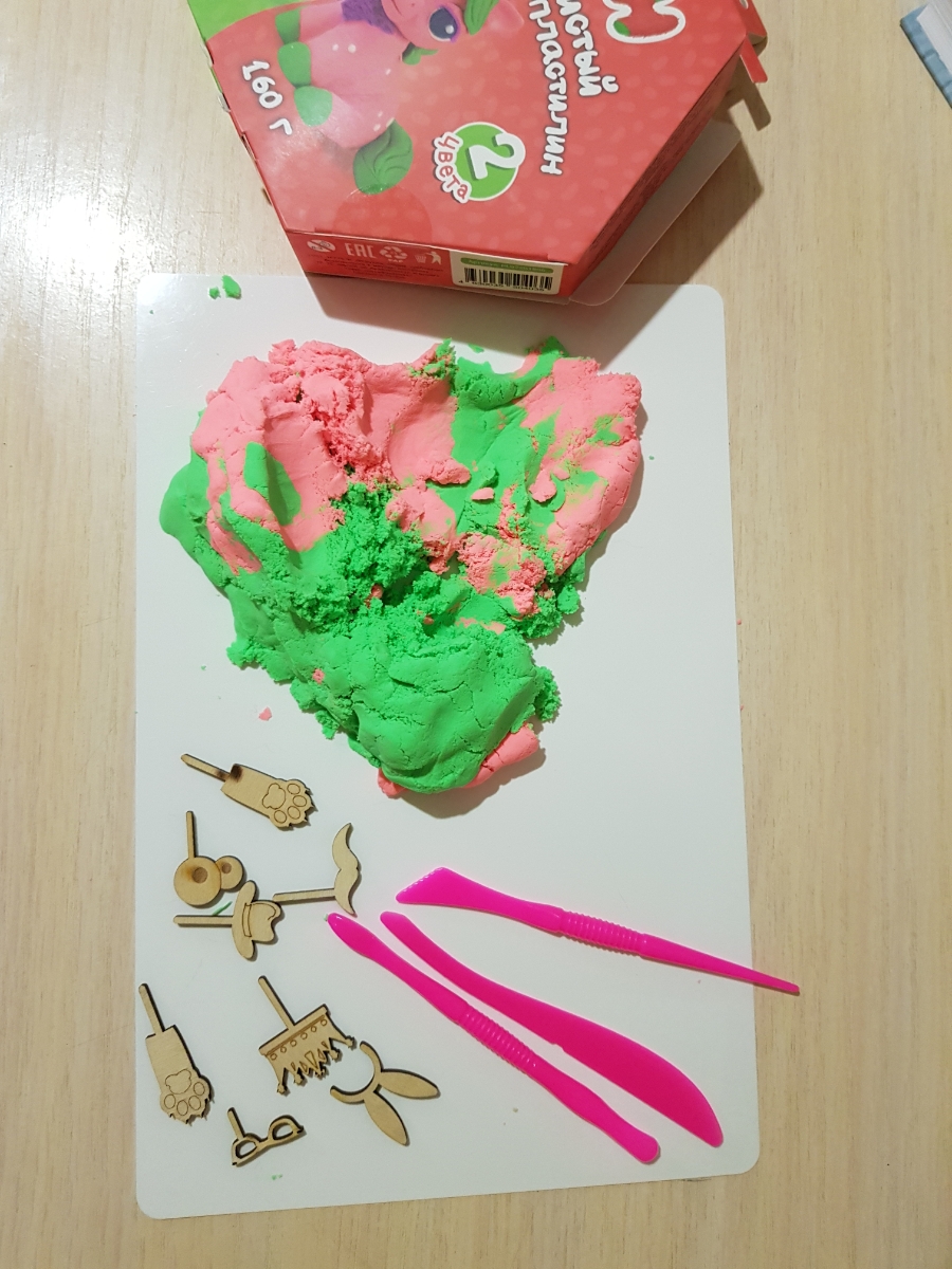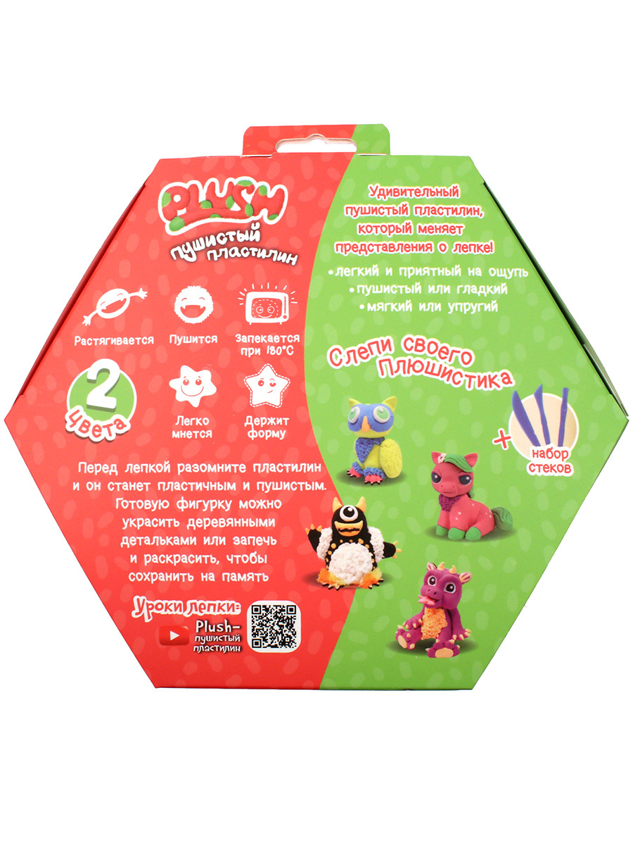 Пушистый пластилин "PLUSH" набор для лепки розовый + зеленый 160 г.