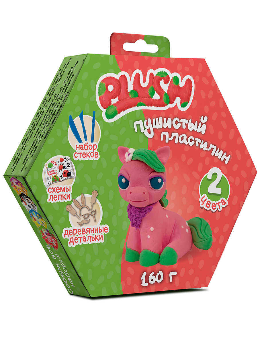 Масса для лепки PLUSH Пушистый розовый + зелёный 160 гр (PL02201801)