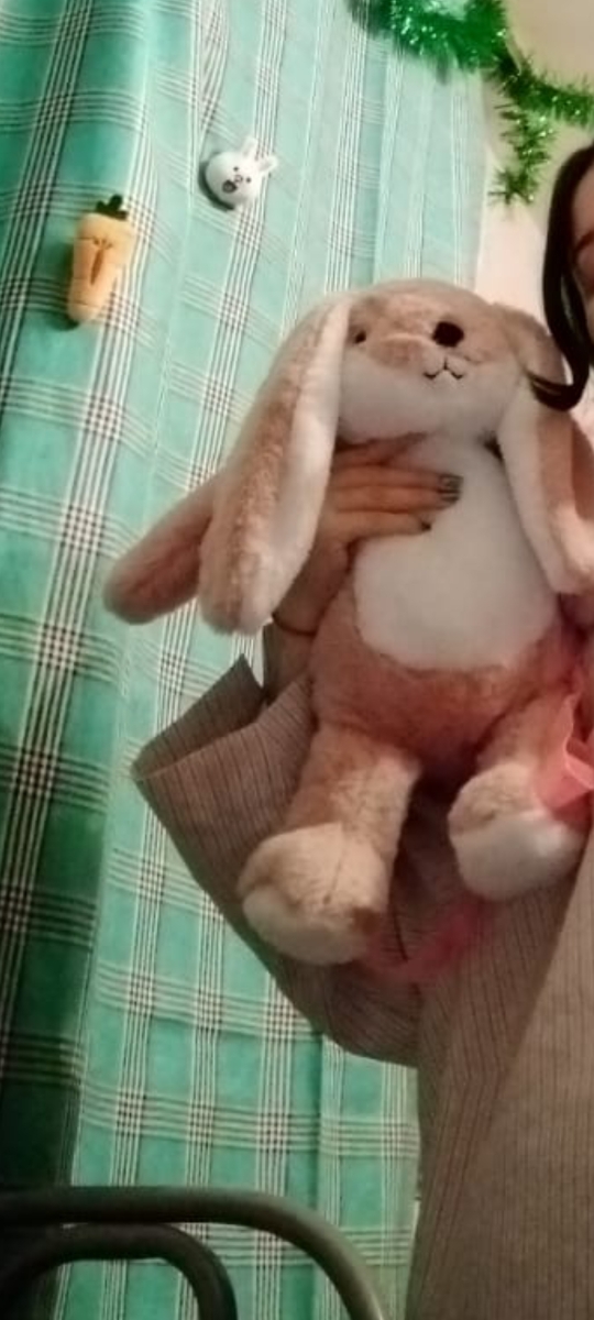 Мягкая игрушка брелок Плюш Ленд Зайка в короне, кремовый