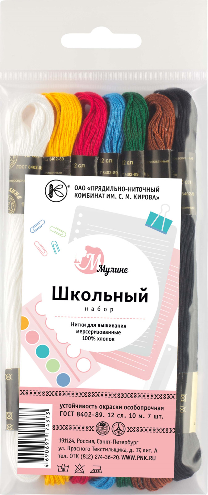 Набор ниток мулине ПНК им. Кирова "Школьный", цвет: разноцветный, 10 м, 24,5 г, 7 шт