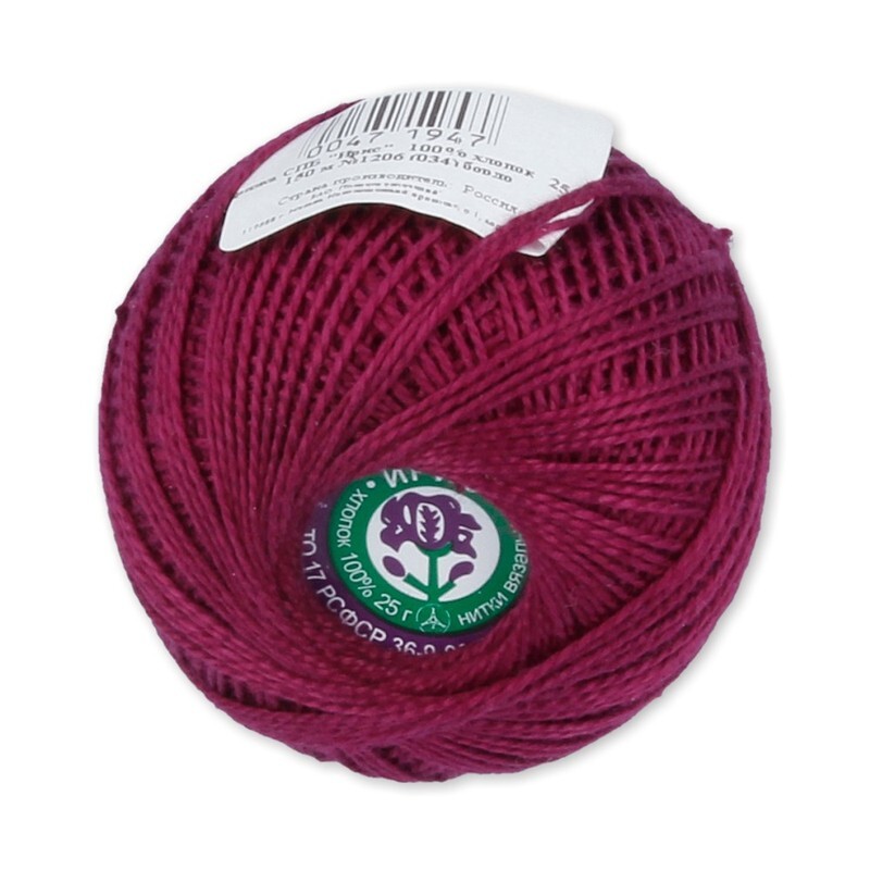 Пряжа СПБ "ИРИС" №1206 (034) бордо 100% мерсеризованный хлопок 20 х 25 гр, 150 м