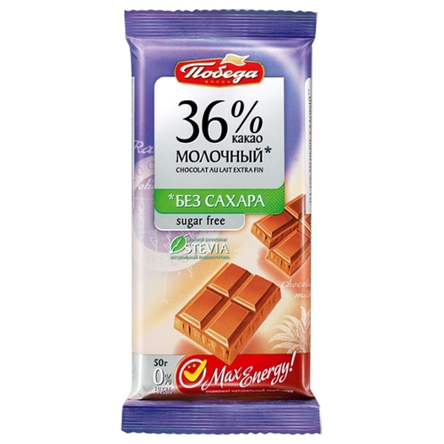 Шоколад Победа вкуса Max Energy молочный 36% без сахара