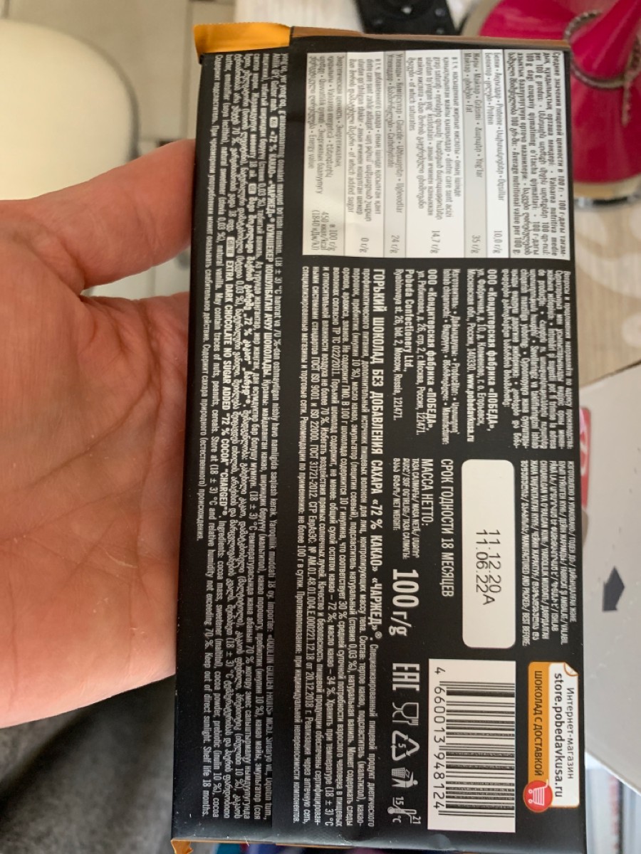 Шоколад Горький Без Добавления Сахара 72% Какао 100г/10 шт