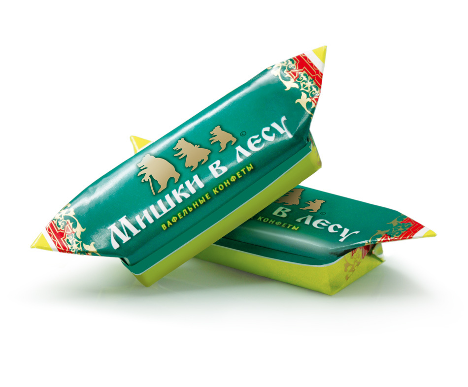 Конфеты Победа вкуса Вафельные "Мишки В Лесу" с начинкой в горьком (72% какао) шоколаде, 1000г