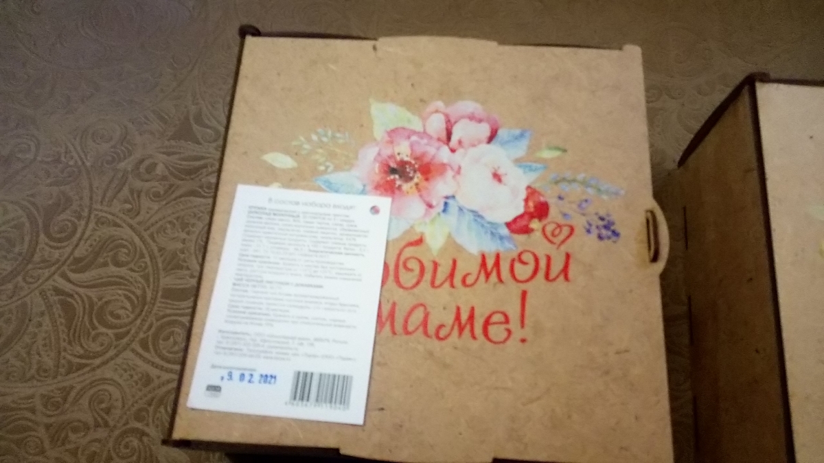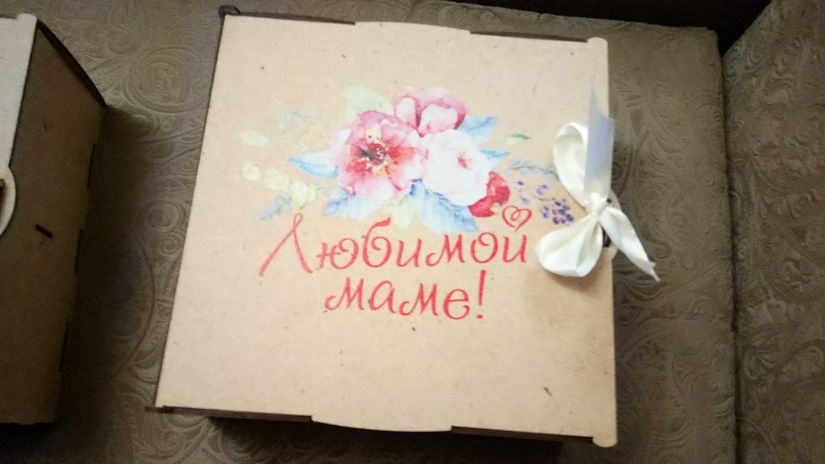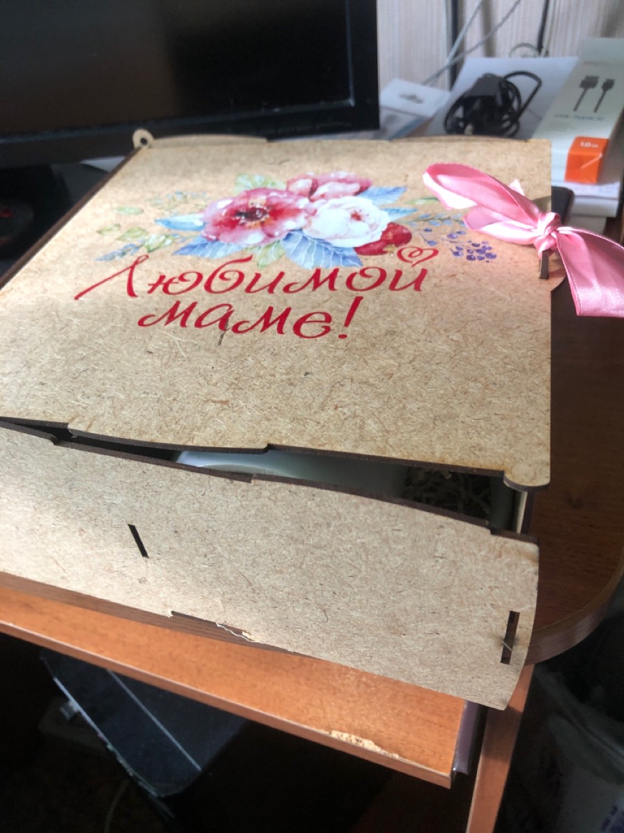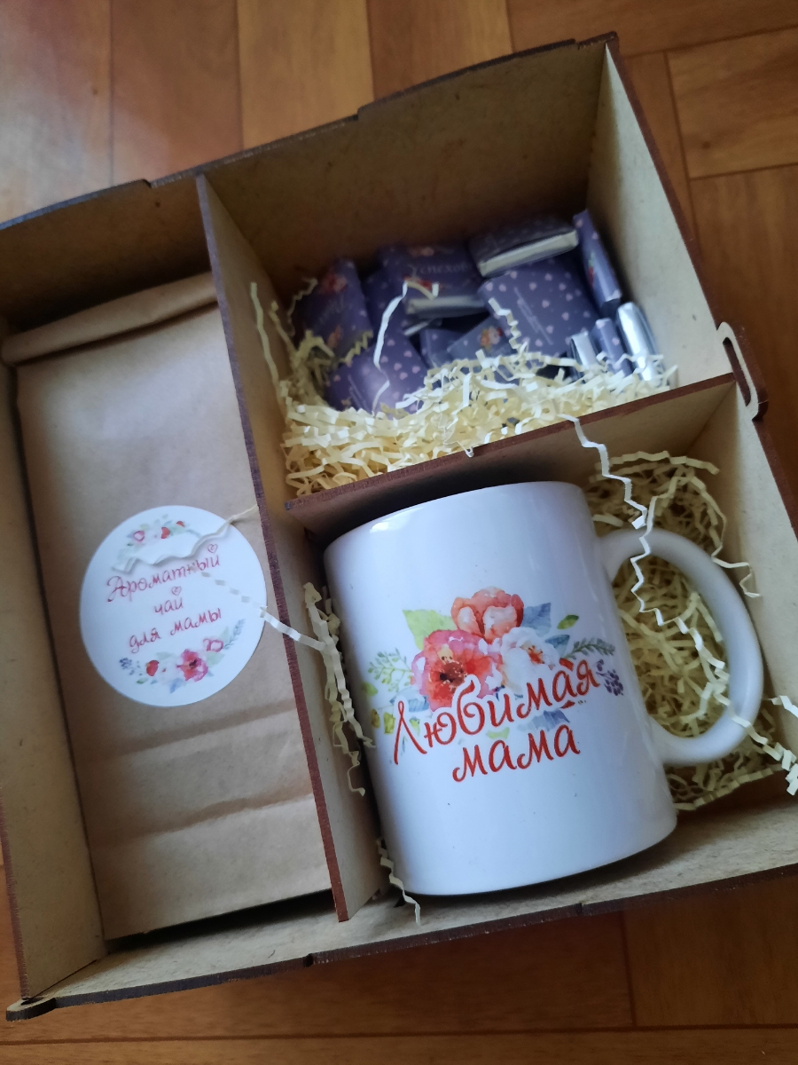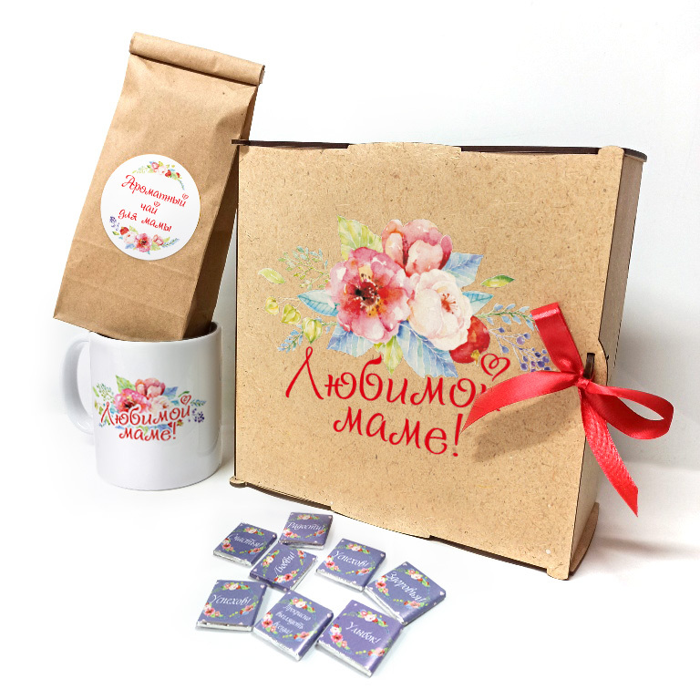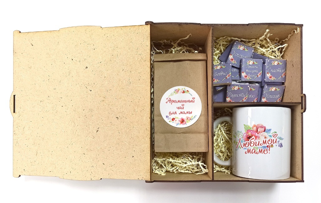 Любимой маме, деревянный короб с чаем, шоколадом и кружкой