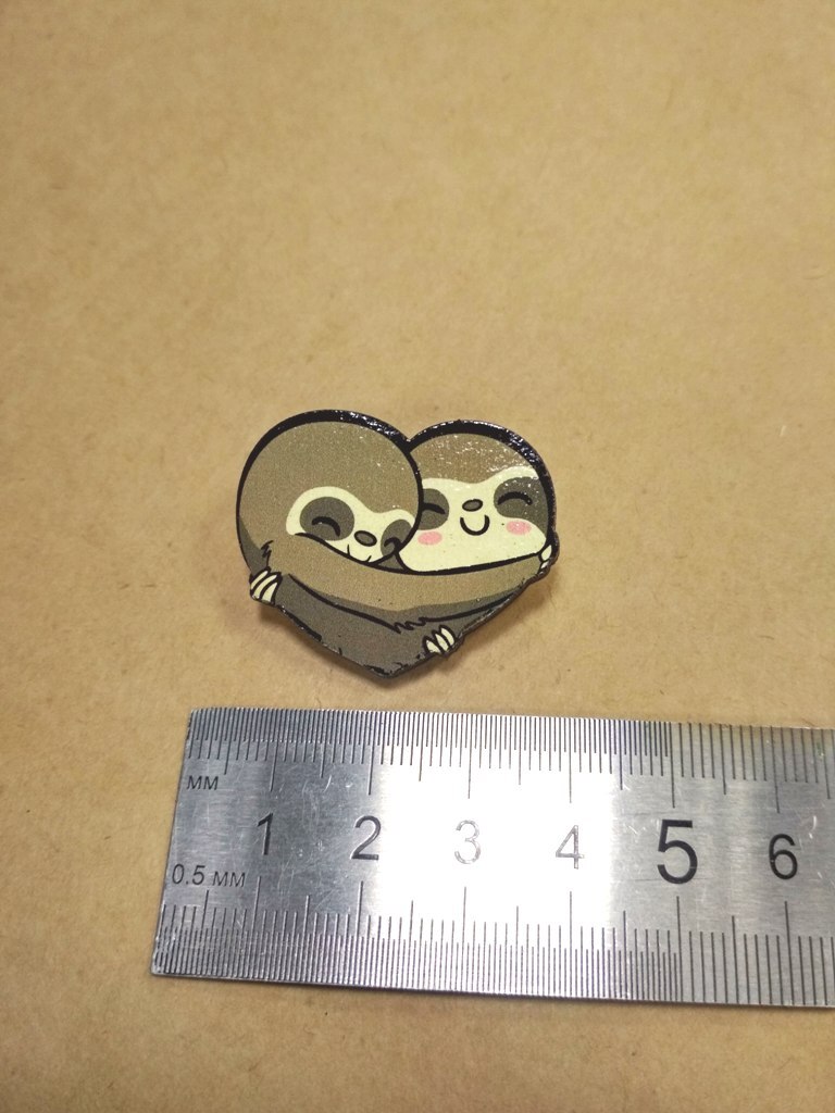 Деревянный значок (брошь) "Сердце из ленивцев" Подариссимо