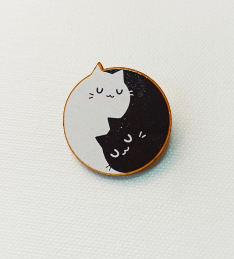 Деревянный значок (брошь) "Коты Инь-Янь" Подариссимо