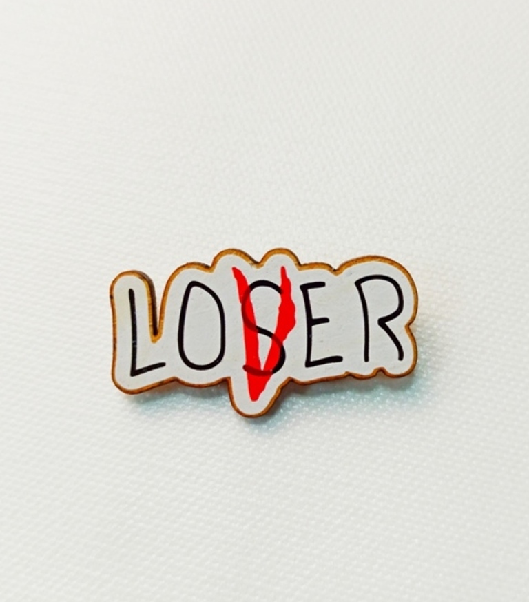 Деревянный значок (брошь) "Lover-Loser" Подариссимо