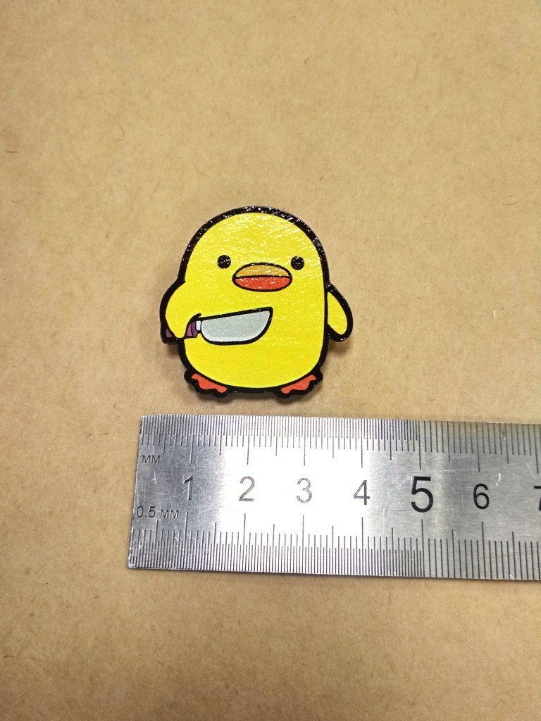 Деревянный значок (брошь) "Уточка с ножом" Подариссимо