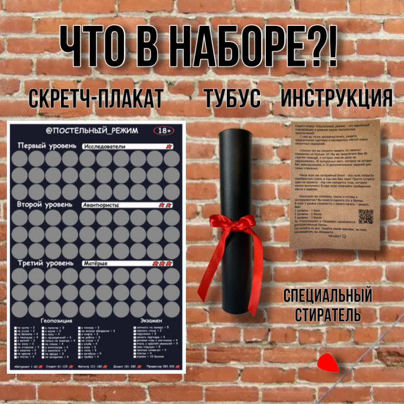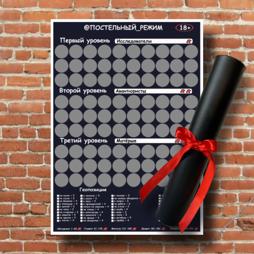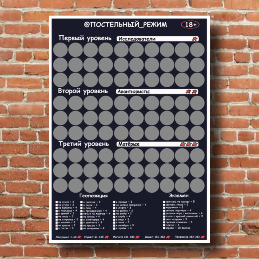 Постельный режим "Тёмно-синий"/Настольная игра для взрослых/Скретч-плакат/Формат А2/Игра для двоих