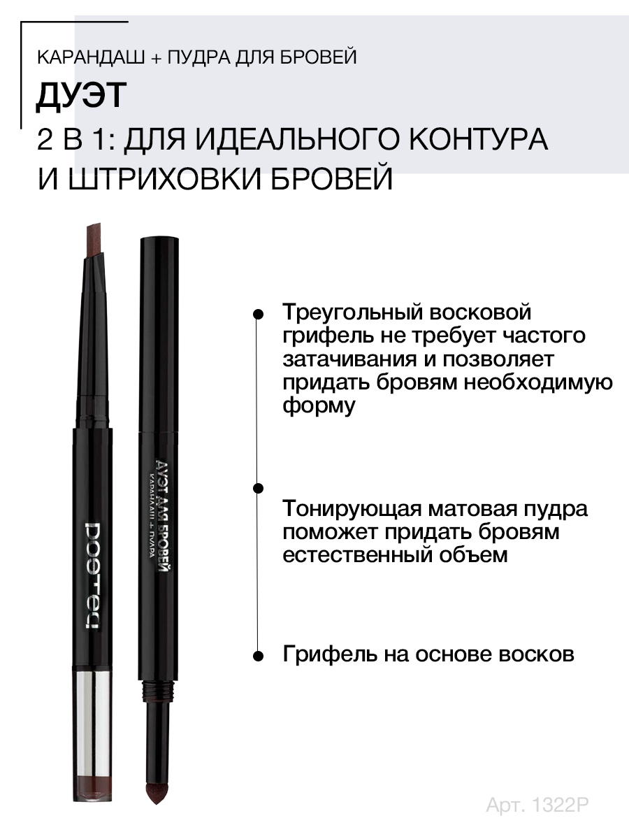 Poeteq Карандаш + пудра для бровей Дуэт, тон №22, 2 г