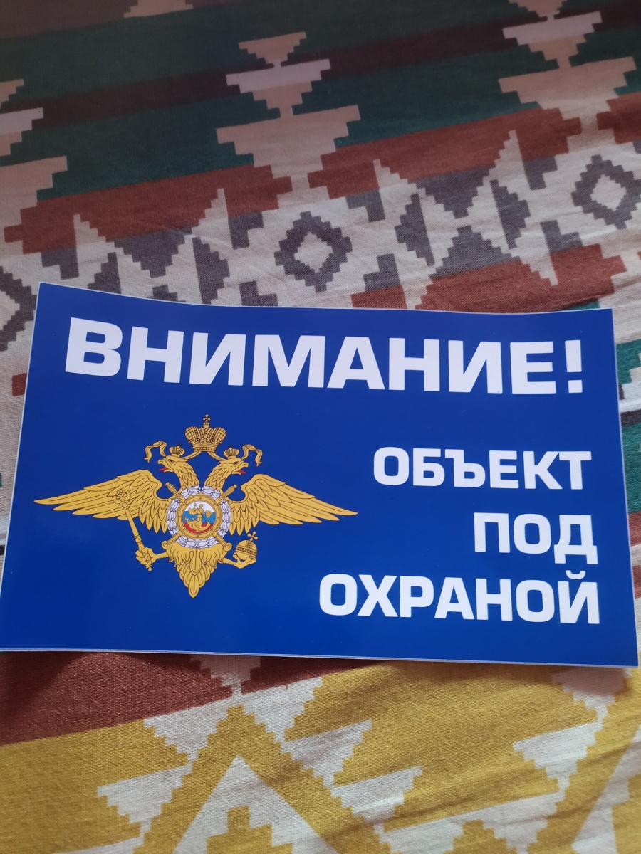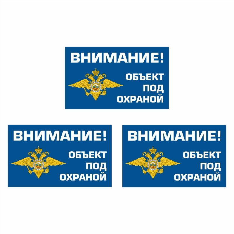 Наклейка виниловая "Внимание! Объект под охраной" синяя 200х120 мм производство ПолиЦентр 3 шт