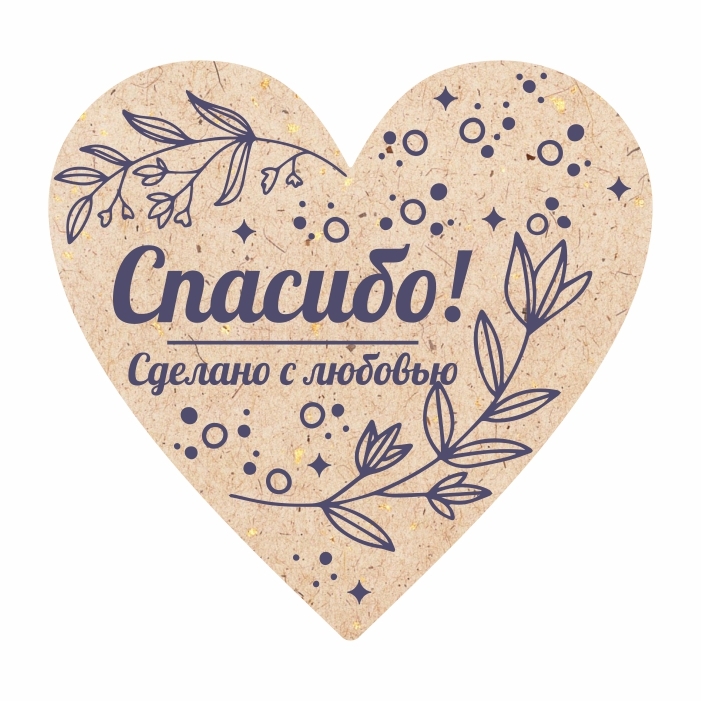 Наклейка "Спасибо. Сделано с любовью" в форме сердца производство ПолиЦентр 100 шт