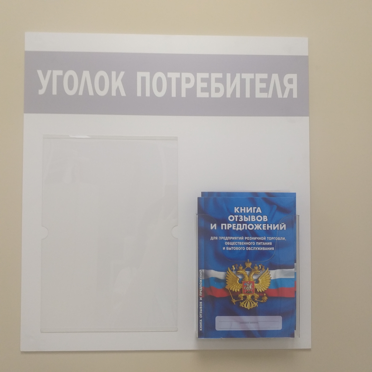 Уголок потребителя + комплект книг 2021 года (3 шт). Информационный стенд для ИП и ООО с карманами: А4 плоский - 1 шт, А5 объемный - 1 шт. Цвет: Белый; Синий. ПолиЦентр