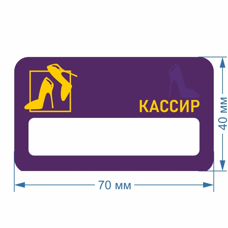 Бейдж акриловый 70х40 мм "Обувь Кассир" на магните с окном для полиграфической вставки ПолиЦентр 1 шт