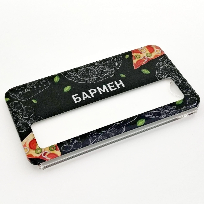 Бейдж акриловый 70х40 мм "Бейдж Пицца Бармен" тип 3 на магните с окном для полиграфической вставки ПолиЦентр 5 шт