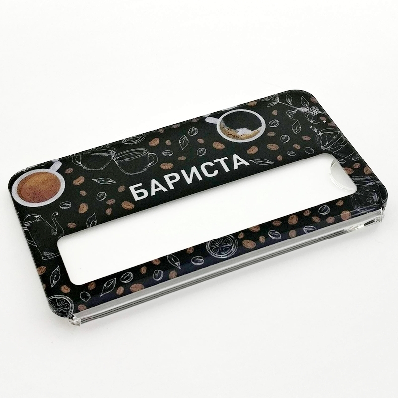 Бейдж акриловый 70х40 мм "Бейдж Кофейня Бариста" на магните с окном для полиграфической вставки ПолиЦентр 5 шт