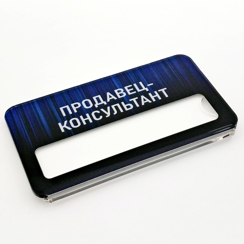 Бейдж акриловый 70х40 мм "Бейдж универсальный Продавец-консультант" тип 2 на магните с окном для полиграфической вставки ПолиЦентр 1 шт