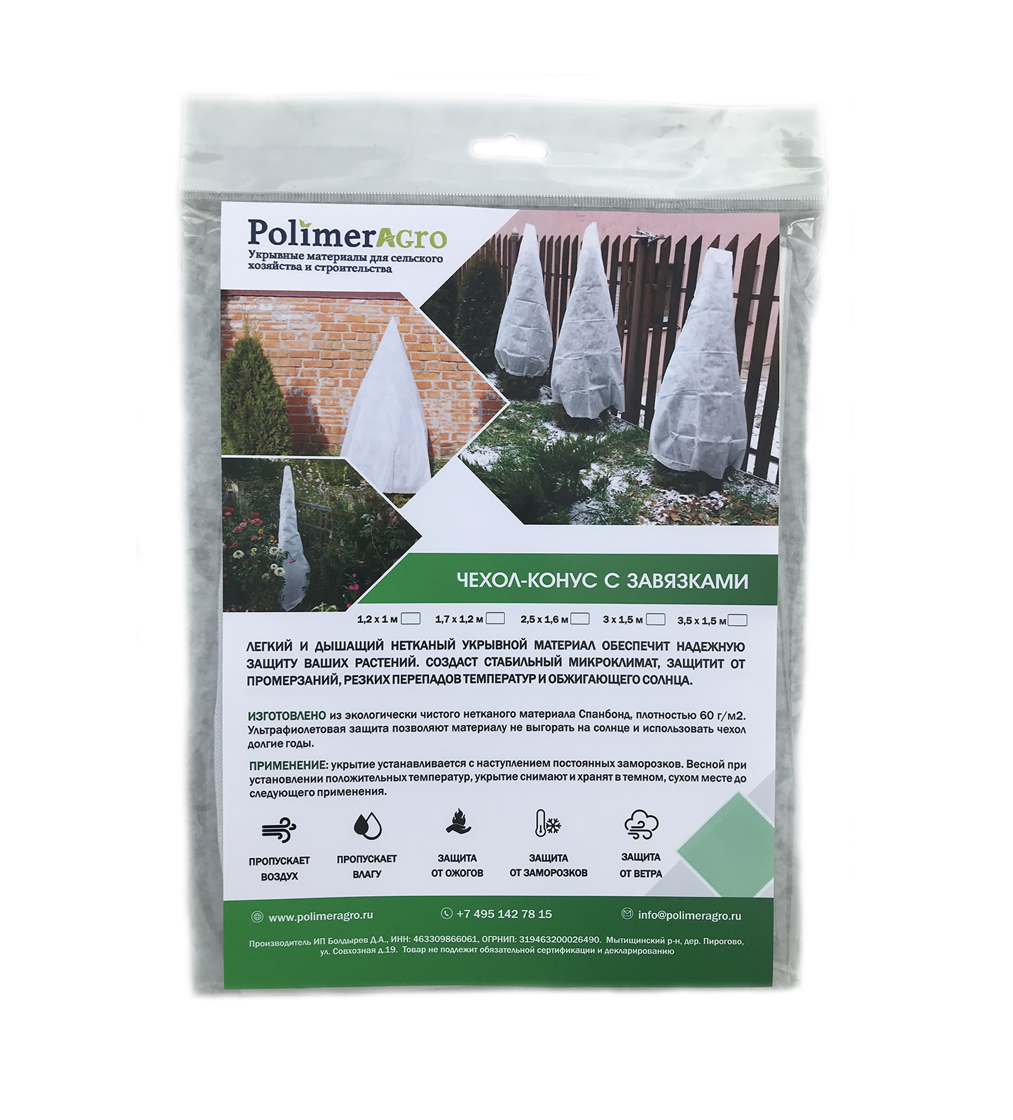 Чехол для укрытия растений Спанбонд, 0.9x1.5, высота 1.5 м, 60 г-кв.м, 3 шт