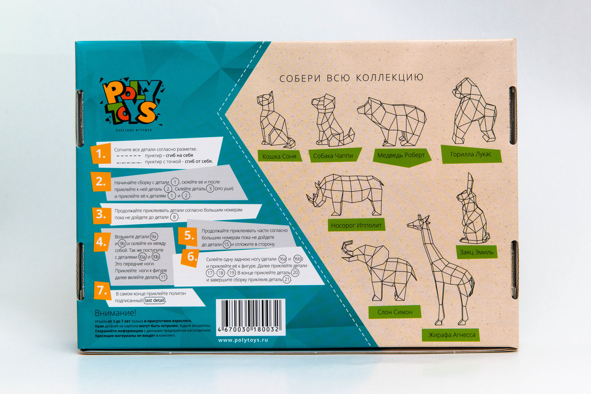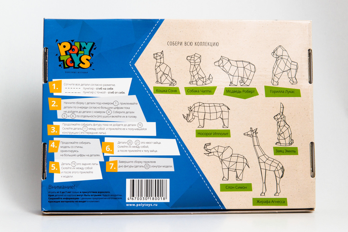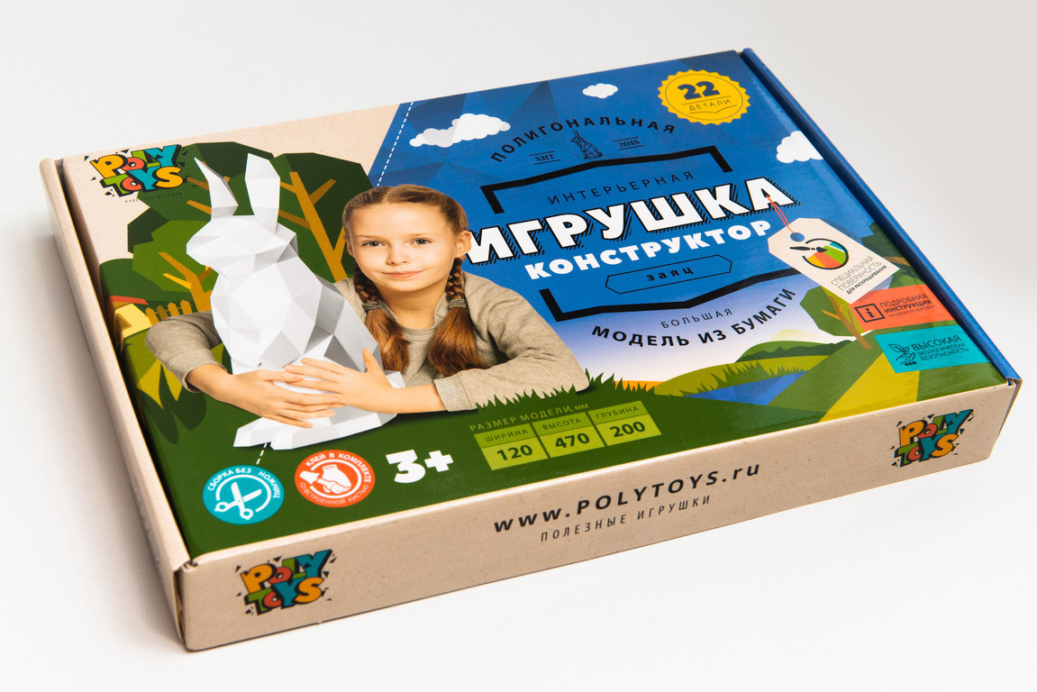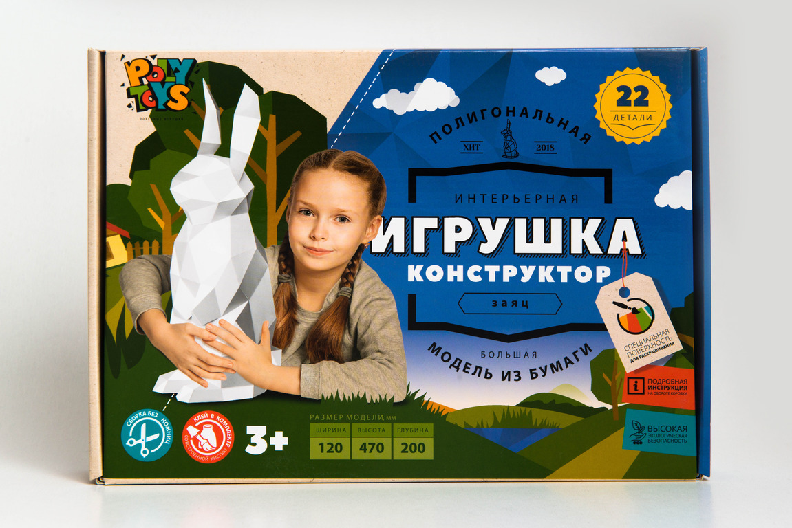 Конструктор для сборки полигональной фигуры из бумаги Polytoys "Заяц Эмиль"