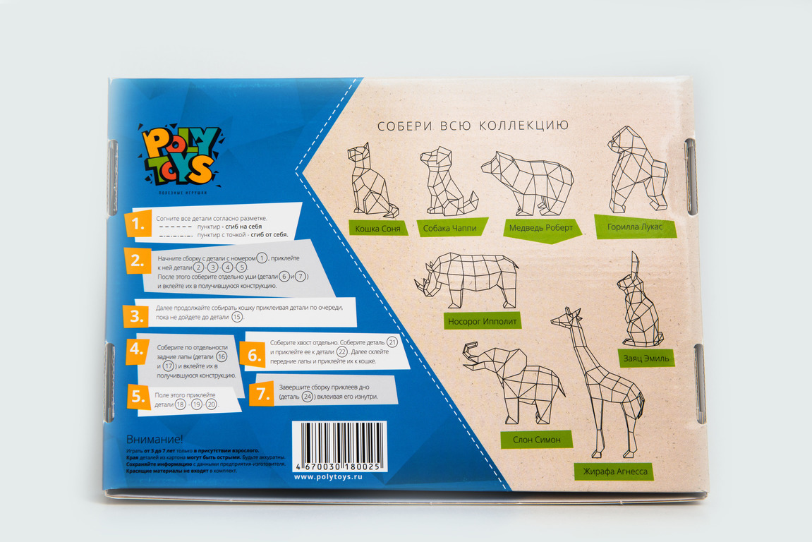 Конструктор для сборки полигональной фигуры из бумаги Polytoys "Кошка Соня"