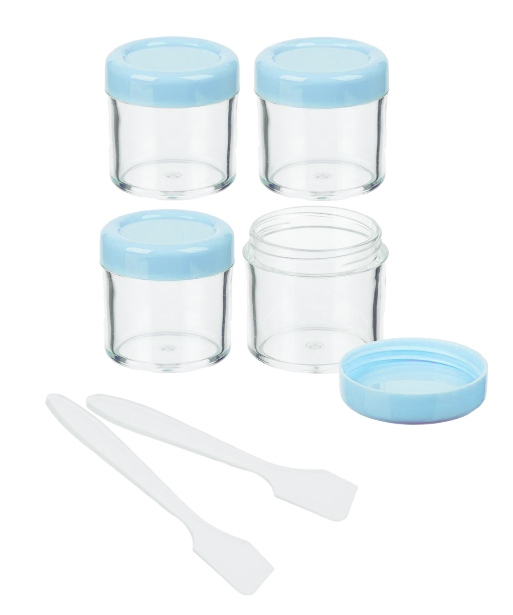 Помогалочка Баночки для хранения крема с лопаткой 20 мл. набор из 4-х шт., голубые