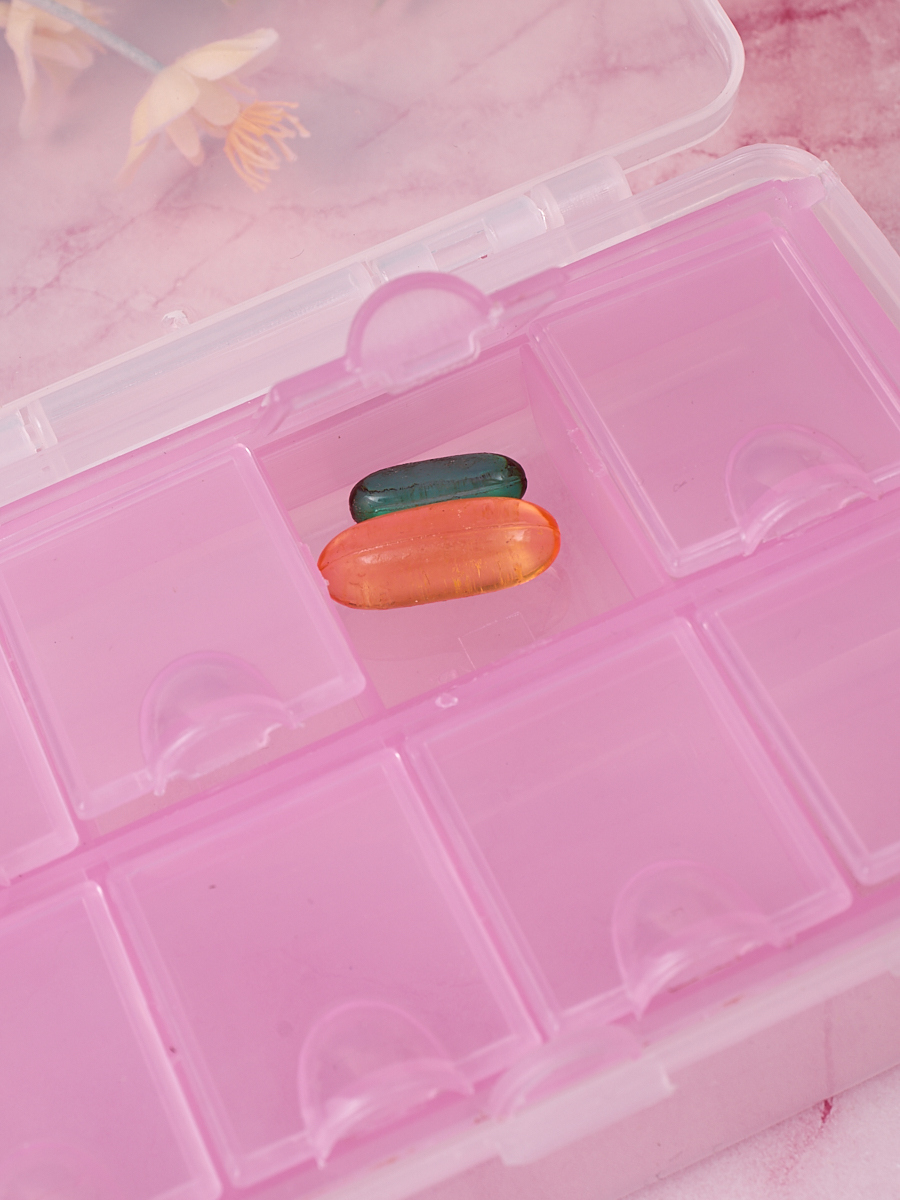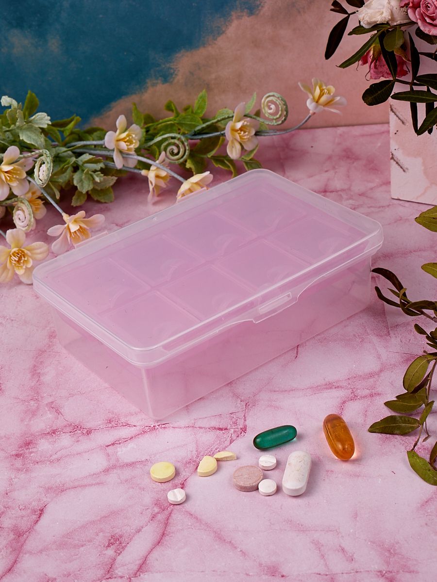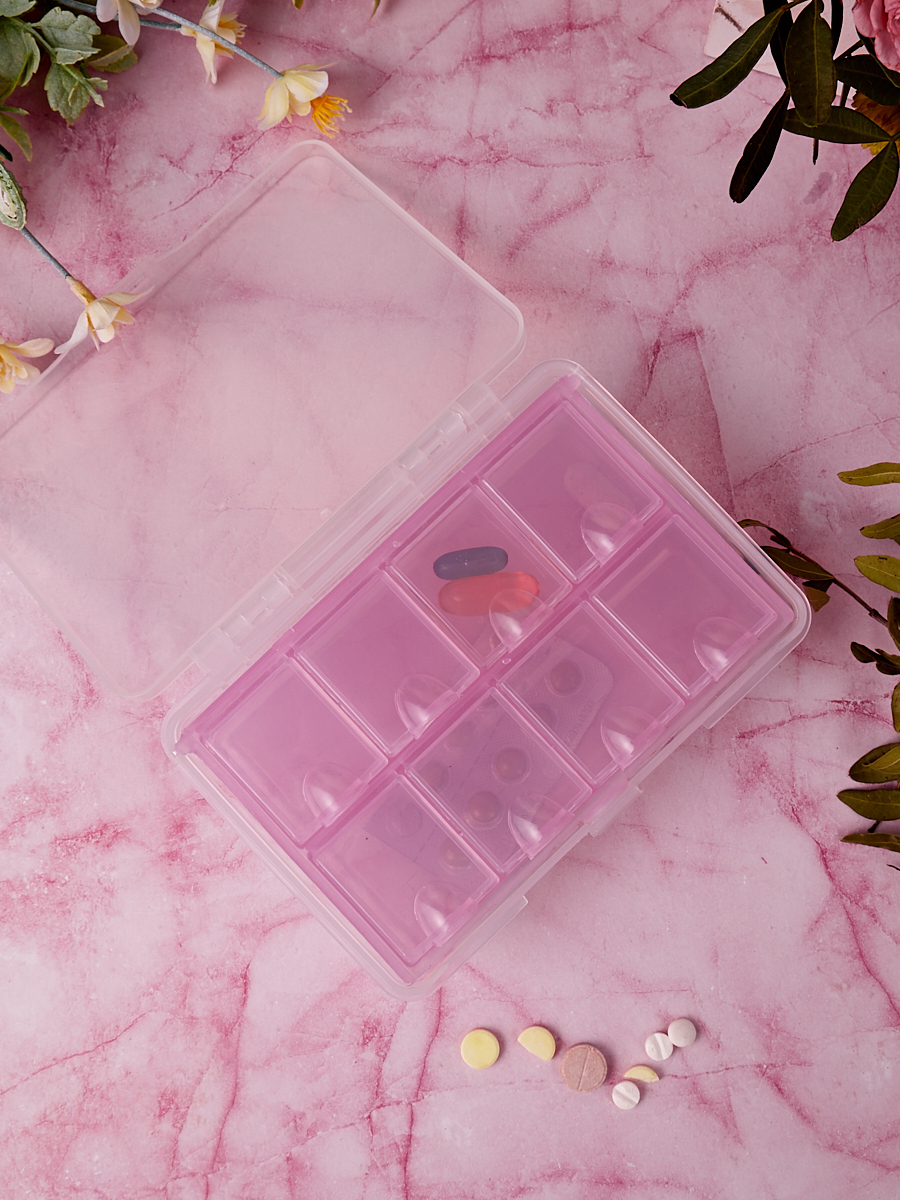 Таблетница, Помогалочка, 8 ячеек, розовый.