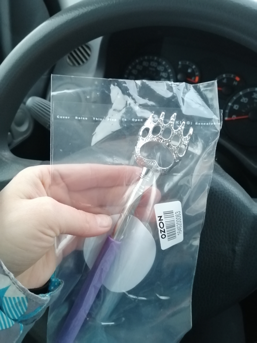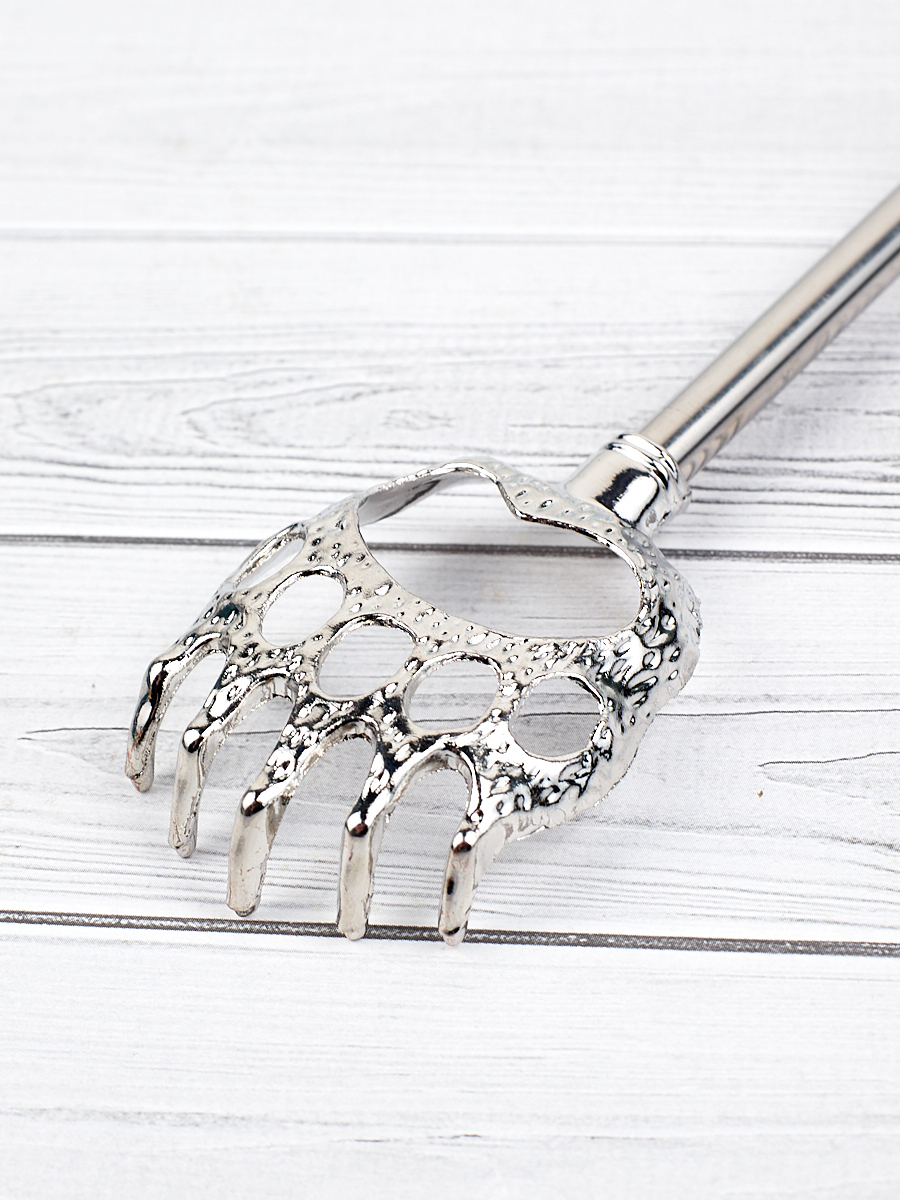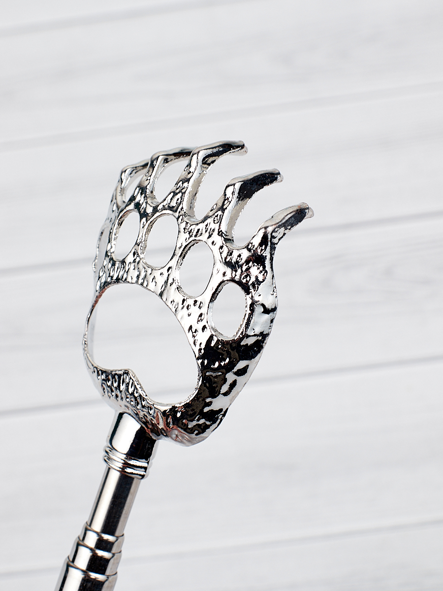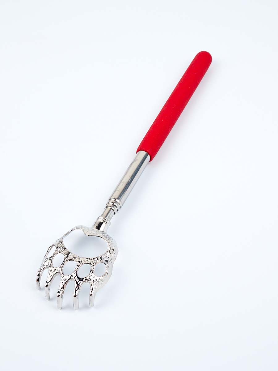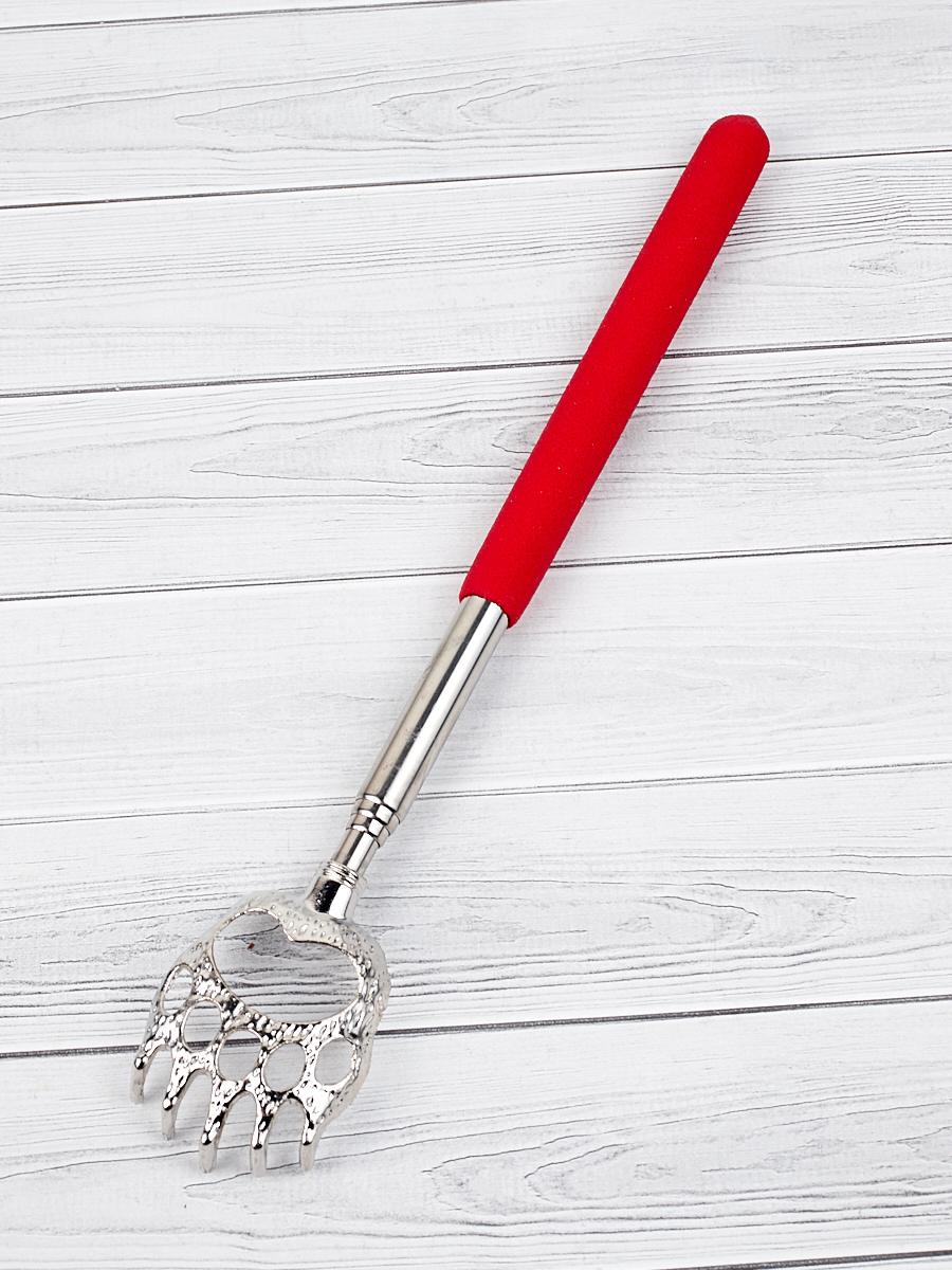 Помогалочка Массажер ручной для спины Чесалка, красная с серебристым 21-58 см., медвежья лапка