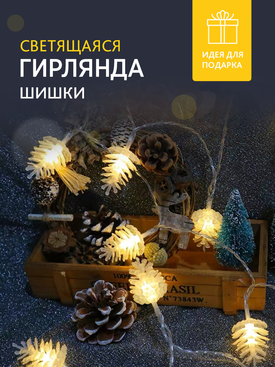 Электрогирлянда интерьерная Шишки Port Miou 20 ламп, 1.8 м, питание 2 АА, 1 шт