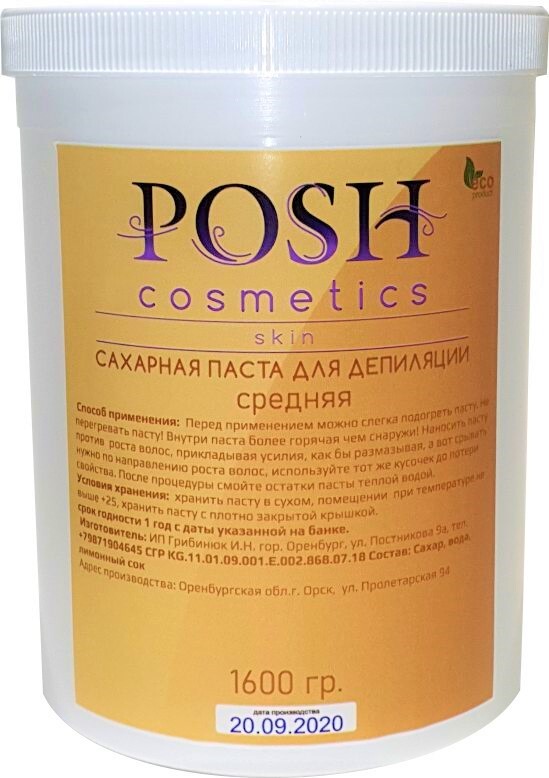 POSH cosmetics, Сахарная паста для шугаринга 1600 г средняя