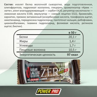 Протеиновый батончик POWER PRO Zero без сахара со вкусом крем-латте, 50 г (х20)