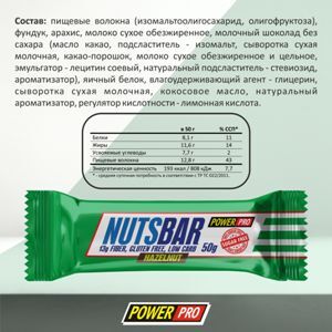 Протеиновый батончик POWER PRO с орехами без сахара, фундук, 60г (х3)