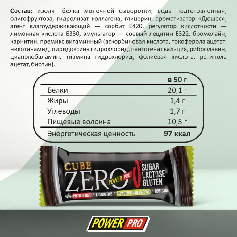 Протеиновый батончик POWER PRO Zero без сахара, груша, 50 г (х20)