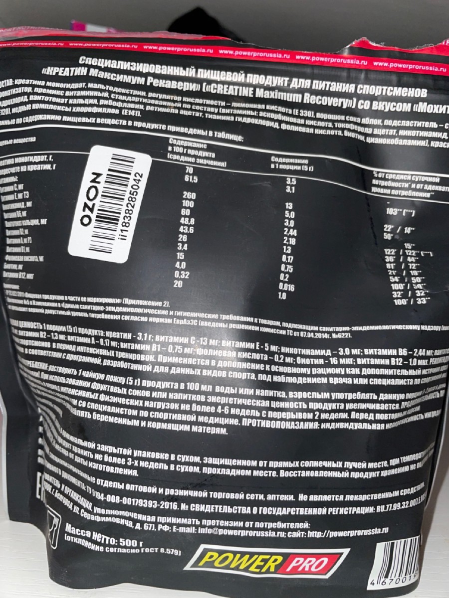 Креатин с транспортной системой Power Pro "Creatine Maximum Recovery со вкусом Мохито", 500 г