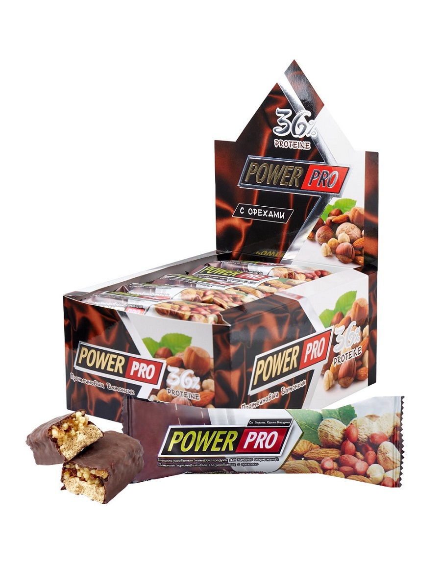 Протеиновый батончик с орехами POWER PRO, ассорти, 60 г (х20)