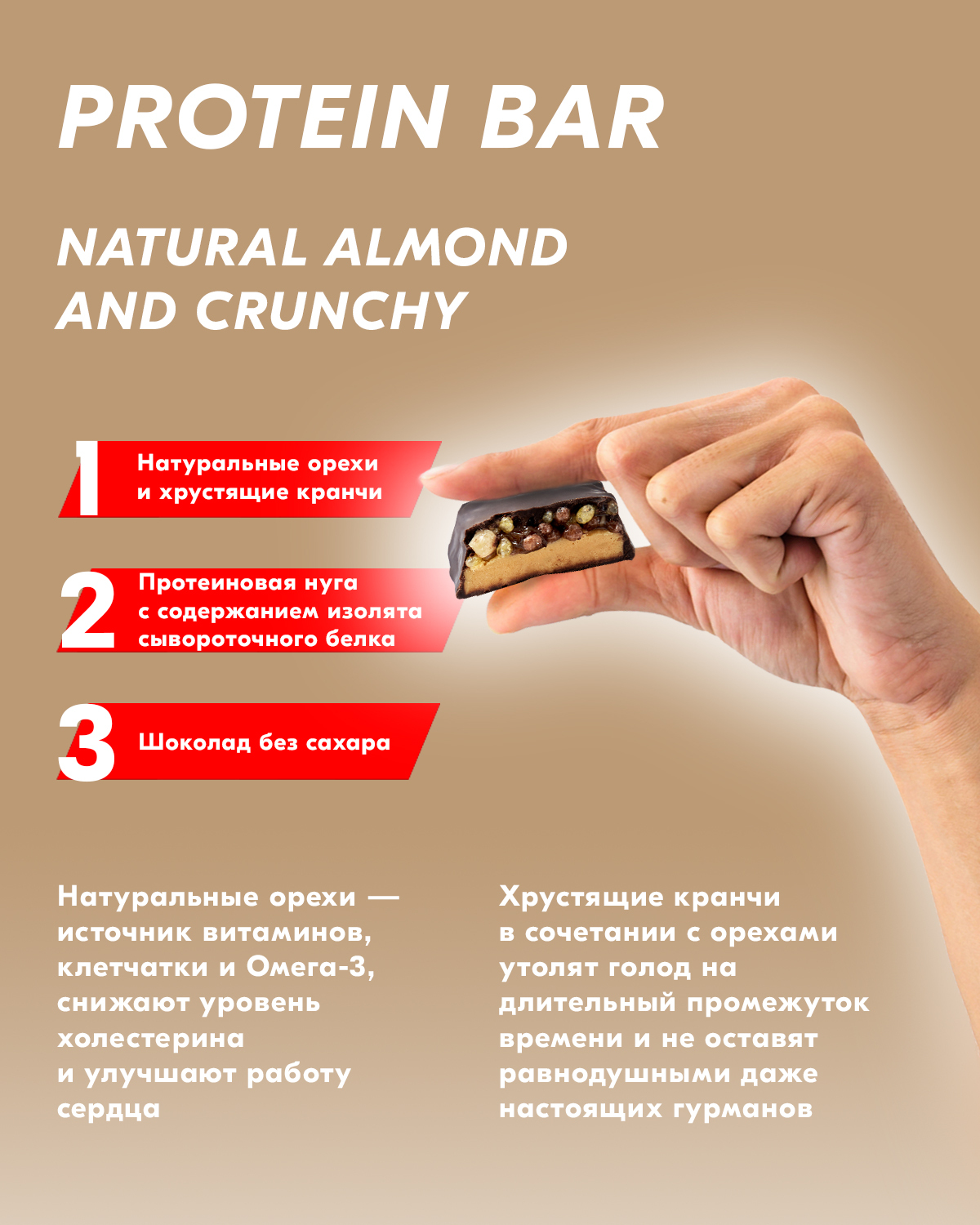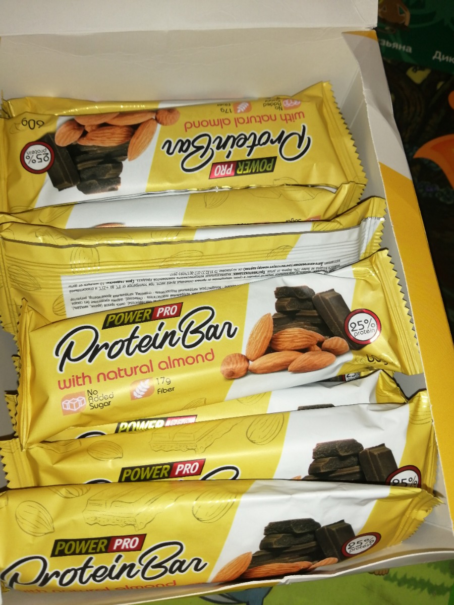 Протеиновый батончик POWER PRO с орехами без сахара, миндаль, 60г (х20)