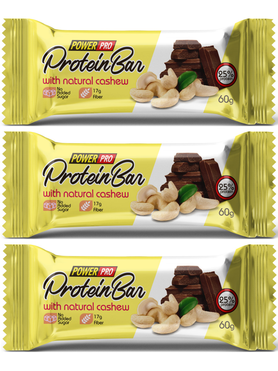 Протеиновый батончик POWER PRO с орехами без сахара, кешью, 60г (х3)