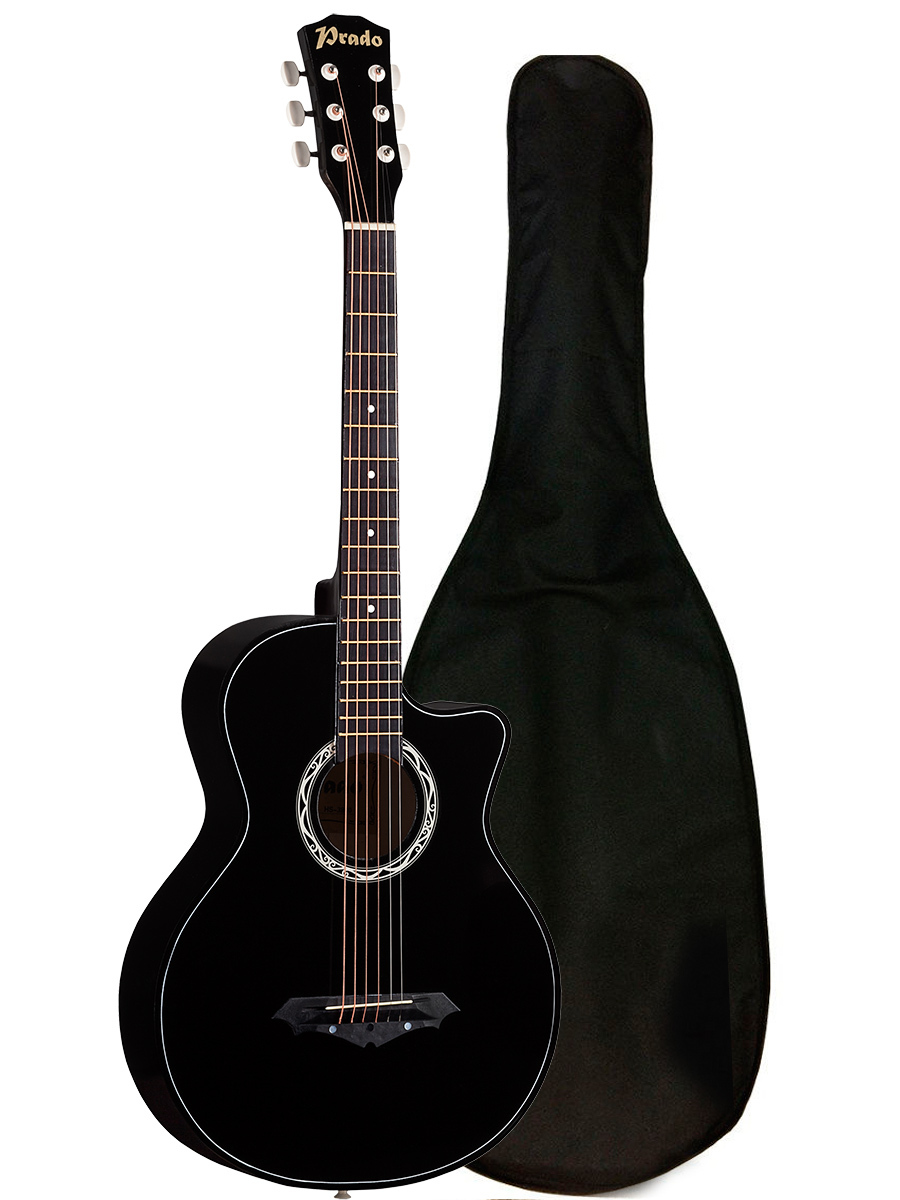 Черная акустическая гитара 38 Prado HS-3810 с чехлом