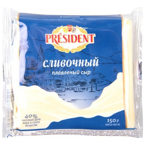 Сыр President плавленый сливочный 8 ломтиков 45%