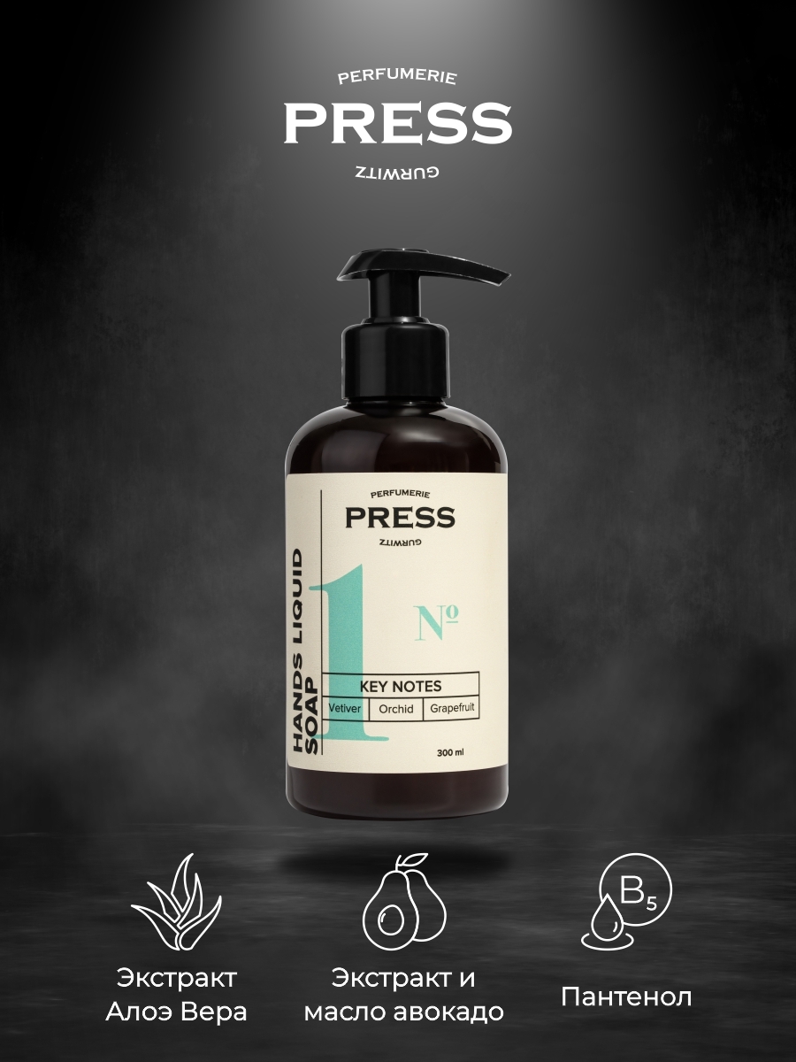 Гель для душа №2 Черный перец, Бобы Тонка, Пачули PRESS GURWITZ PERFUMERIE натуральный, парфюмированный, бессульфатный, 300 мл