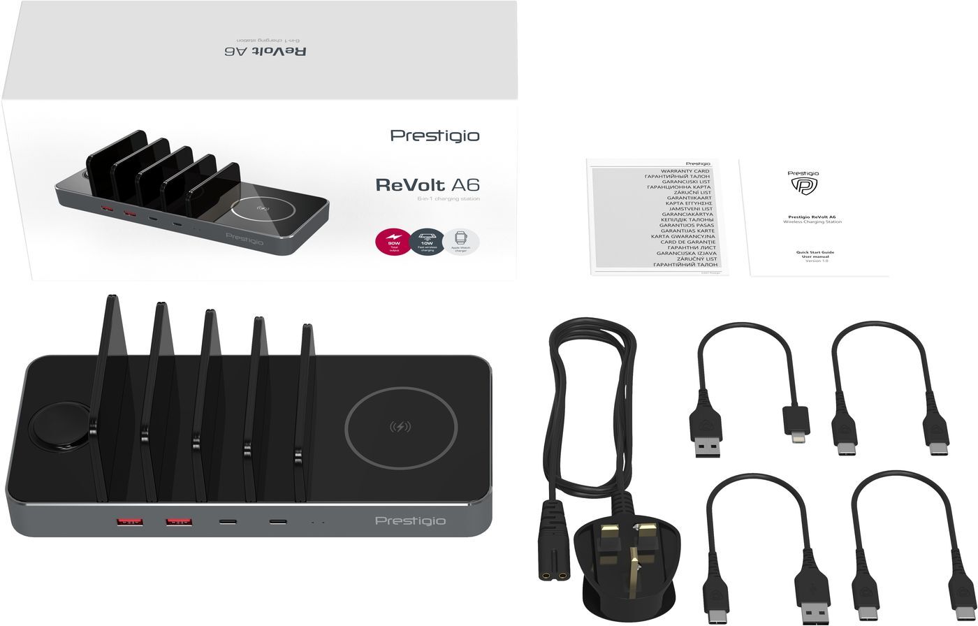 Беспроводная зарядная станция Prestigio ReVolt A6, 6 в 1 для Apple Iphone
