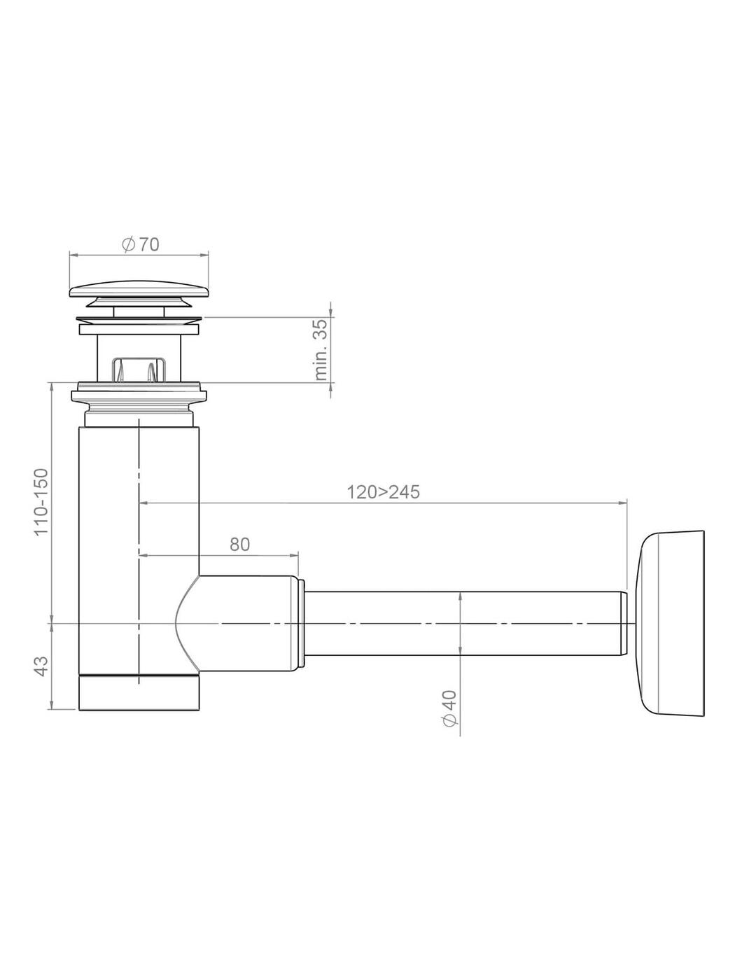Сифон для раковины/умывальника телескопический с выпуском клик-клак Prevex Preloc PR3-C4NF3-001