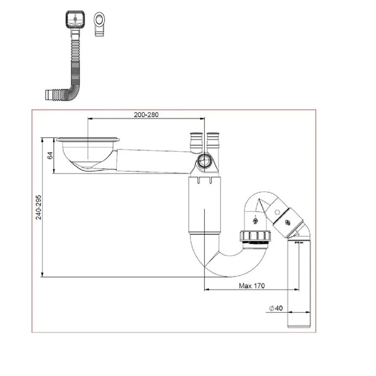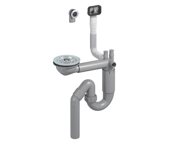 Сифон для кухонной мойки Prevex P-loc с выпуском DN114 и гофрой 40/50, PL1-D9CF5-SANT-01