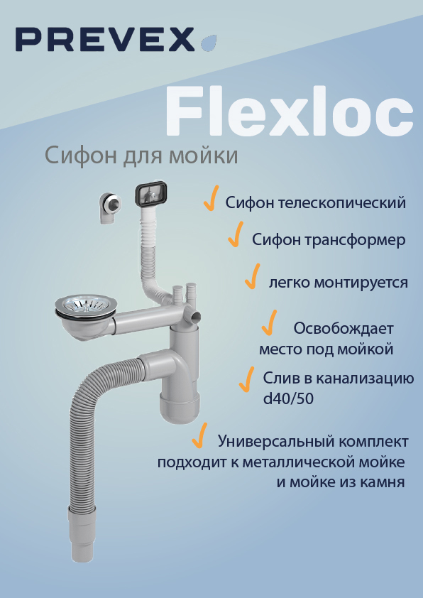 Cифон для кухонной мойки PREVEX универсальный 41K13929