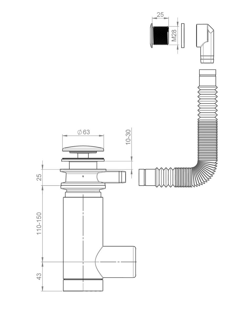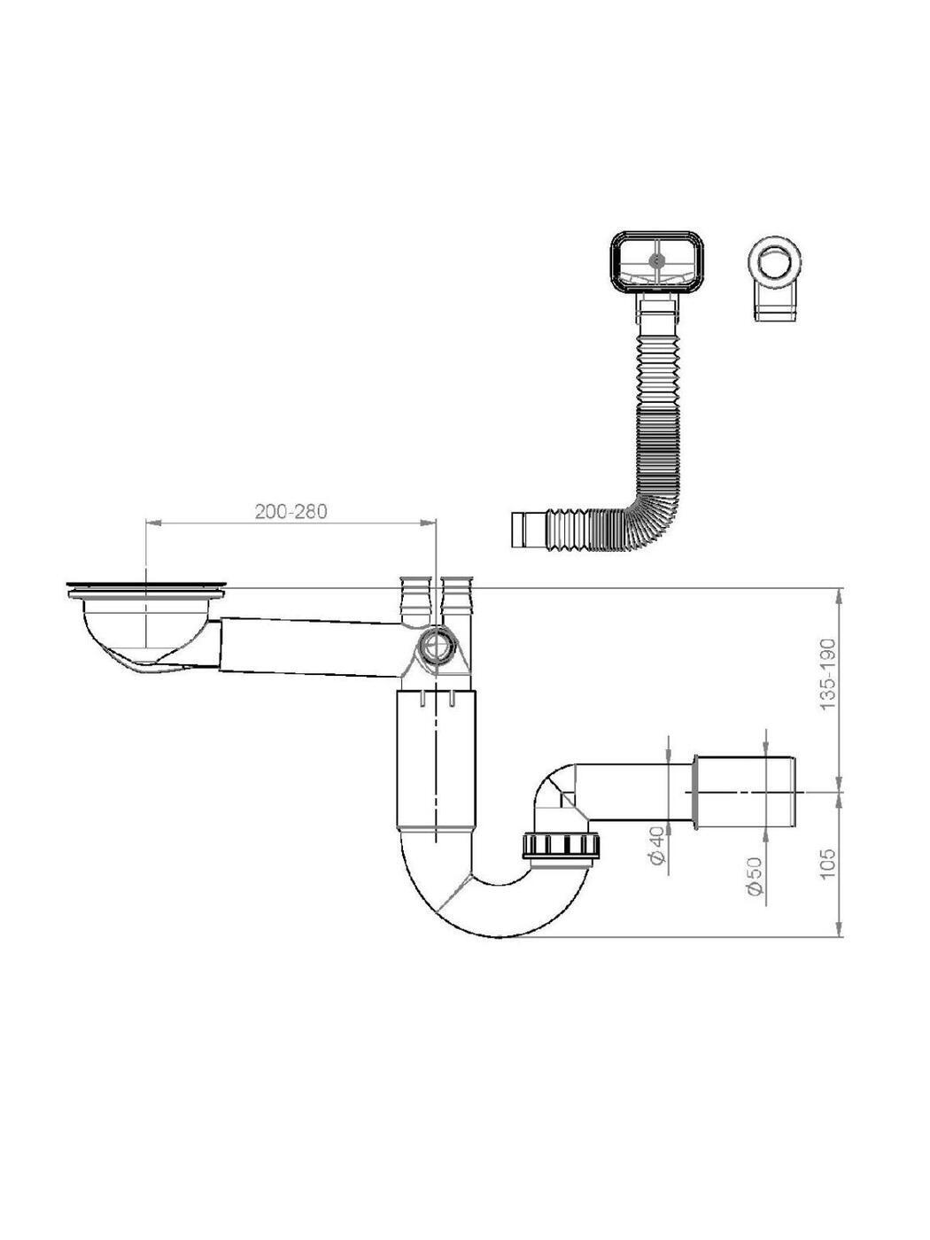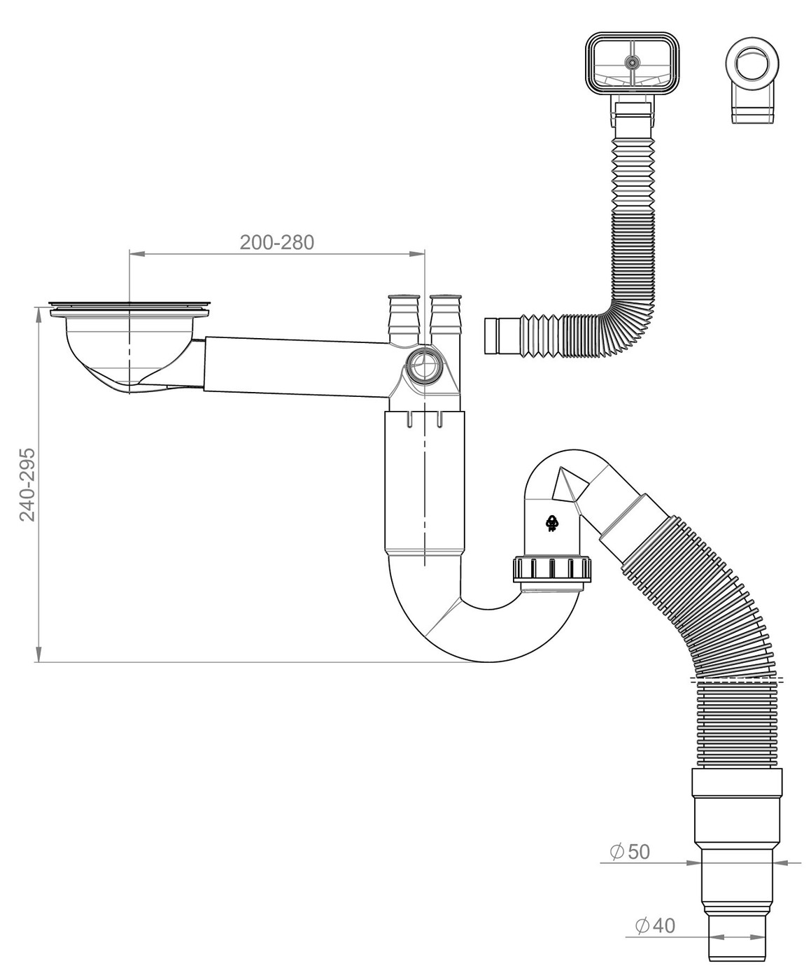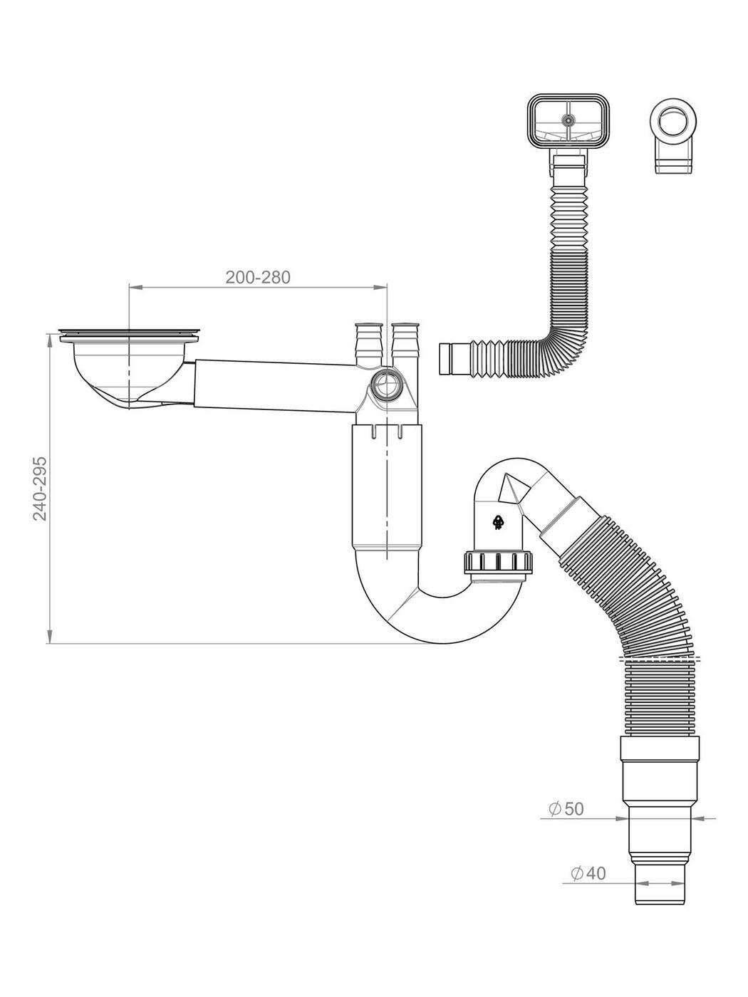 Сифон телескопический-трансформер для кухонной мойки, №15 Prevex